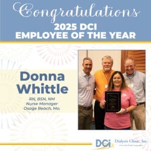 Congratulations to DCI’s 2025 Employees of the Year: Osage Beach, Mo., Nurse Manager Donna Whittle, RN, BSN, NM; and Cincinnati, Ohio, Patient Care Technician Parshawna Johnson. We also celebrate our 2025 Corporate Employee of the Year Paralegal Patti Bielefeld.