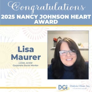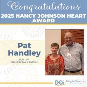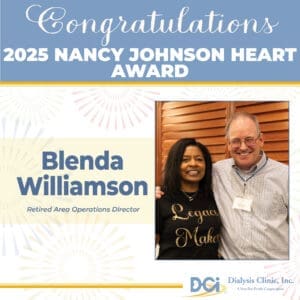 Each year, DCI Vice Chair of the Board and REACH Kidney Care Co-founder Dr. Doug Johnson bestows the Nancy Johnson Heart Award on employees embodying the spirit of his mom Nancy. Congratulations to Lisa, Pat and Blenda, the 2025 Nancy Johnson Heart Award recipients.