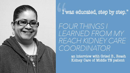 4 Things I Learned From My Reach Kidney Care Coordinator Patient Stories 4 Things I Learned From My Reach Kidney Care Coordinator An interview with Grisel Burgos, Reach Kidney Care of Middle TN patient Grisel Burgos has…dcidemoOctober 7, 2019
